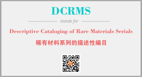 英文缩略词“DCRMS”经常作为“Descriptive Cataloging of Rare Materials Serials”的英文缩写来使用,中文表示:“稀有材料系列的描述性编目”。本文将详细介绍英文缩写词DCRMS所代表英文单词,其对应的中文拼音、详细解释以及在英语中的流行度。此外,还有关于缩略词DCRMS的分类、应用领域及相关应用示例等。