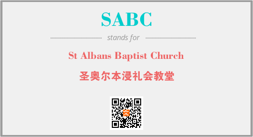 上述内容是“St Albans Baptist Church”作为“SABC”的缩写,解释为“圣奥尔本浸礼会教堂”时的信息,以及英文缩略词SABC所代表的英文单词,其对应的中文拼音、详细解释以及在英文中的流行度和相关分类、应用领域及应用示例等。