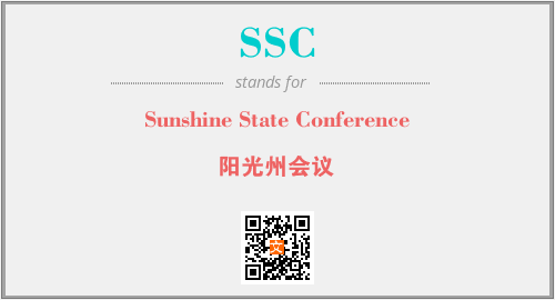 英文缩略词“SSC”经常作为“Sunshine State Conference”的英文缩写来使用,中文表示:“阳光州会议”。本文将详细介绍英文缩写词SSC所代表英文单词,其对应的中文拼音、详细解释以及在英语中的流行度。此外,还有关于缩略词SSC的分类、应用领域及相关应用示例等。