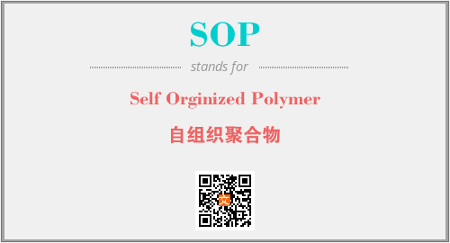 英文缩略词“SOP”经常作为“Self Orginized Polymer”的英文缩写来使用,中文表示:“自组织聚合物”。本文将详细介绍英文缩写词SOP所代表英文单词,其对应的中文拼音、详细解释以及在英语中的流行度。此外,还有关于缩略词SOP的分类、应用领域及相关应用示例等。