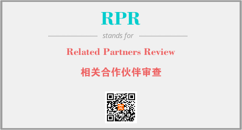 上述内容是“Related Partners Review”作为“RPR”的缩写,解释为“相关合作伙伴审查”时的信息,以及英文缩略词RPR所代表的英文单词,其对应的中文拼音、详细解释以及在英文中的流行度和相关分类、应用领域及应用示例等。
