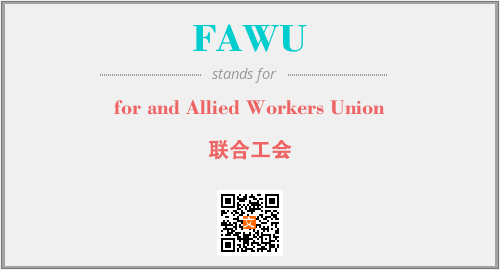 上述内容是“for and Allied Workers Union”作为“FAWU”的缩写,解释为“联合工会”时的信息,以及英文缩略词FAWU所代表的英文单词,其对应的中文拼音、详细解释以及在英文中的流行度和相关分类、应用领域及应用示例等。
