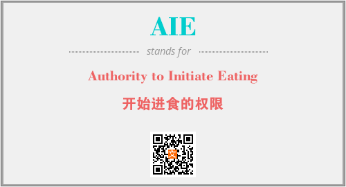 上述内容是“Authority to Initiate Eating”作为“AIE”的缩写,解释为“开始进食的权限”时的信息,以及英文缩略词AIE所代表的英文单词,其对应的中文拼音、详细解释以及在英文中的流行度和相关分类、应用领域及应用示例等。