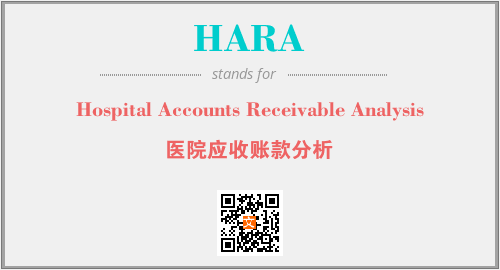 上述内容是“Hospital Accounts Receivable Analysis”作为“HARA”的缩写,解释为“医院应收账款分析”时的信息,以及英文缩略词HARA所代表的英文单词,其对应的中文拼音、详细解释以及在英文中的流行度和相关分类、应用领域及应用示例等。