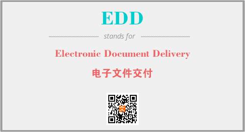 英文缩略词“EDD”经常作为“Electronic Document Delivery”的英文缩写来使用,中文表示:“电子文件交付”。本文将详细介绍英文缩写词EDD所代表英文单词,其对应的中文拼音、详细解释以及在英语中的流行度。此外,还有关于缩略词EDD的分类、应用领域及相关应用示例等。