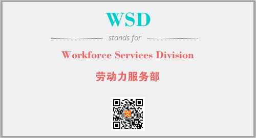 上述内容是“Workforce Services Division”作为“WSD”的缩写,解释为“劳动力服务部”时的信息,以及英文缩略词WSD所代表的英文单词,其对应的中文拼音、详细解释以及在英文中的流行度和相关分类、应用领域及应用示例等。