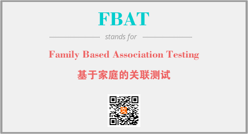 上述内容是“Family Based Association Testing”作为“FBAT”的缩写,解释为“基于家庭的关联测试”时的信息,以及英文缩略词FBAT所代表的英文单词,其对应的中文拼音、详细解释以及在英文中的流行度和相关分类、应用领域及应用示例等。