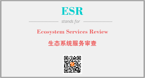 上述内容是“Ecosystem Services Review”作为“ESR”的缩写,解释为“生态系统服务审查”时的信息,以及英文缩略词ESR所代表的英文单词,其对应的中文拼音、详细解释以及在英文中的流行度和相关分类、应用领域及应用示例等。