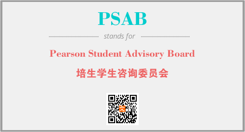 以上为Pearson Student Advisory Board英文缩略词PSAB的中文解释,以及该英文缩写在英语的流行度、分类和应用领域方面的信息。