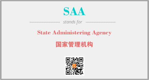 英文缩略词“SAA”经常作为“State Administering Agency”的英文缩写来使用,中文表示:“国家管理机构”。本文将详细介绍英文缩写词SAA所代表英文单词,其对应的中文拼音、详细解释以及在英语中的流行度。此外,还有关于缩略词SAA的分类、应用领域及相关应用示例等。