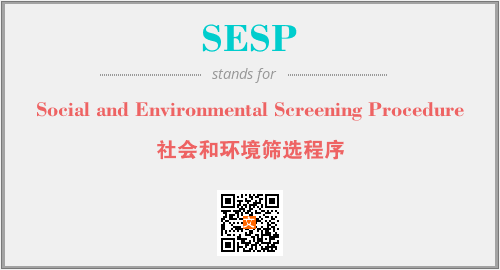 上述内容是“Social and Environmental Screening Procedure”作为“SESP”的缩写,解释为“社会和环境筛选程序”时的信息,以及英文缩略词SESP所代表的英文单词,其对应的中文拼音、详细解释以及在英文中的流行度和相关分类、应用领域及应用示例等。