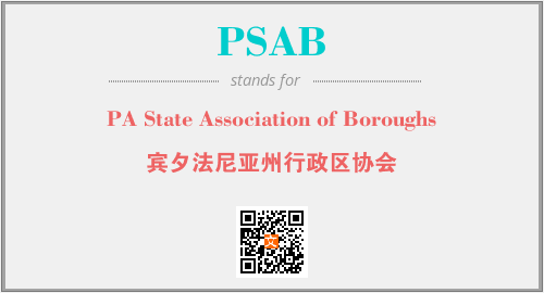 上述内容是“PA State Association of Boroughs”作为“PSAB”的缩写,解释为“宾夕法尼亚州行政区协会”时的信息,以及英文缩略词PSAB所代表的英文单词,其对应的中文拼音、详细解释以及在英文中的流行度和相关分类、应用领域及应用示例等。