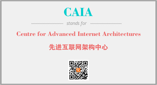 上述内容是“Centre for Advanced Internet Architectures”作为“CAIA”的缩写,解释为“先进互联网架构中心”时的信息,以及英文缩略词CAIA所代表的英文单词,其对应的中文拼音、详细解释以及在英文中的流行度和相关分类、应用领域及应用示例等。
