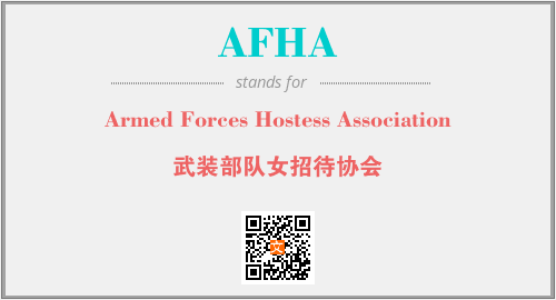 上述内容是“Armed Forces Hostess Association”作为“AFHA”的缩写,解释为“武装部队女招待协会”时的信息,以及英文缩略词AFHA所代表的英文单词,其对应的中文拼音、详细解释以及在英文中的流行度和相关分类、应用领域及应用示例等。