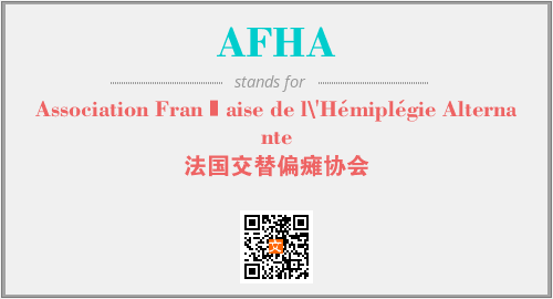 上述内容是“Association Française de l\'Hémiplégie Alternante”作为“AFHA”的缩写,解释为“法国交替偏瘫协会”时的信息,以及英文缩略词AFHA所代表的英文单词,其对应的中文拼音、详细解释以及在英文中的流行度和相关分类、应用领域及应用示例等。