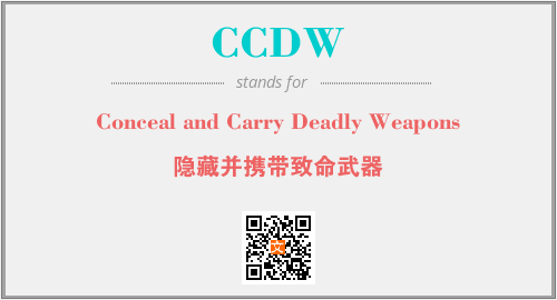 英文缩略词“CCDW”经常作为“Conceal and Carry Deadly Weapons”的英文缩写来使用,中文表示:“隐藏并携带致命武器”。本文将详细介绍英文缩写词CCDW所代表英文单词,其对应的中文拼音、详细解释以及在英语中的流行度。此外,还有关于缩略词CCDW的分类、应用领域及相关应用示例等。