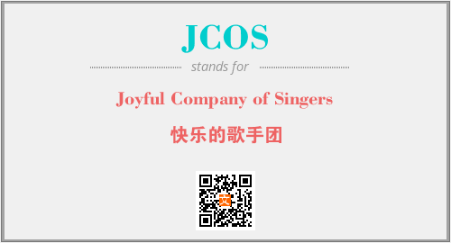 上述内容是“Joyful Company of Singers”作为“JCOS”的缩写,解释为“快乐的歌手团”时的信息,以及英文缩略词JCOS所代表的英文单词,其对应的中文拼音、详细解释以及在英文中的流行度和相关分类、应用领域及应用示例等。