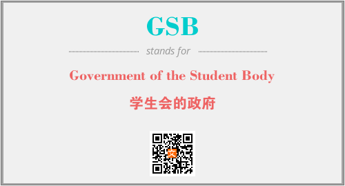 英文缩略词“GSB”经常作为“Government of the Student Body”的英文缩写来使用,中文表示:“学生会的政府”。本文将详细介绍英文缩写词GSB所代表英文单词,其对应的中文拼音、详细解释以及在英语中的流行度。此外,还有关于缩略词GSB的分类、应用领域及相关应用示例等。