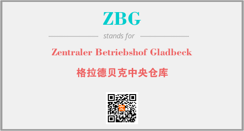 上述内容是“Zentraler Betriebshof Gladbeck”作为“ZBG”的缩写,解释为“格拉德贝克中央仓库”时的信息,以及英文缩略词ZBG所代表的英文单词,其对应的中文拼音、详细解释以及在英文中的流行度和相关分类、应用领域及应用示例等。