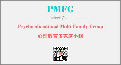 英文缩略词“PMFG”经常作为“Psychoeducational Multi Family Group”的英文缩写来使用,中文表示:“心理教育多家庭小组”。本文将详细介绍英文缩写词PMFG所代表英文单词,其对应的中文拼音、详细解释以及在英语中的流行度。此外,还有关于缩略词PMFG的分类、应用领域及相关应用示例等。