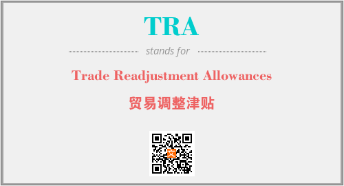 上述内容是“Trade Readjustment Allowances”作为“TRA”的缩写,解释为“贸易调整津贴”时的信息,以及英文缩略词TRA所代表的英文单词,其对应的中文拼音、详细解释以及在英文中的流行度和相关分类、应用领域及应用示例等。