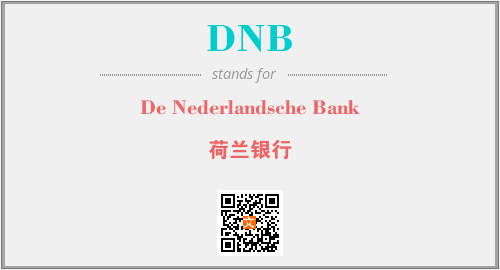 英文缩略词“DNB”经常作为“De Nederlandsche Bank”的英文缩写来使用,中文表示:“荷兰银行”。本文将详细介绍英文缩写词DNB所代表英文单词,其对应的中文拼音、详细解释以及在英语中的流行度。此外,还有关于缩略词DNB的分类、应用领域及相关应用示例等。