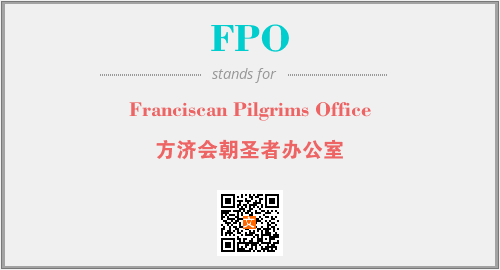 英文缩略词“FPO”经常作为“Franciscan Pilgrims Office”的英文缩写来使用,中文表示:“方济会朝圣者办公室”。本文将详细介绍英文缩写词FPO所代表英文单词,其对应的中文拼音、详细解释以及在英语中的流行度。此外,还有关于缩略词FPO的分类、应用领域及相关应用示例等。
