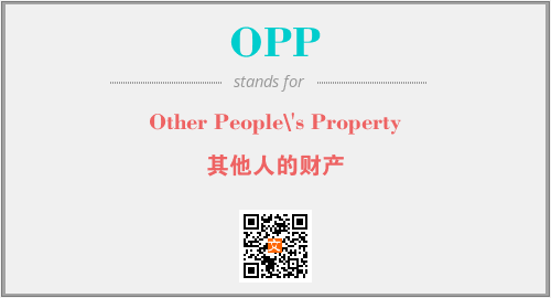 以上为Other People\'s Property英文缩略词OPP的中文解释,以及该英文缩写在英语的流行度、分类和应用领域方面的信息。