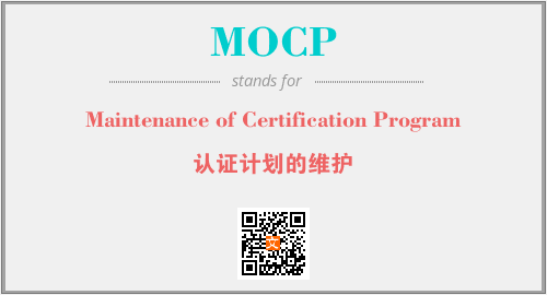 上述内容是“Maintenance of Certification Program”作为“MOCP”的缩写,解释为“认证计划的维护”时的信息,以及英文缩略词MOCP所代表的英文单词,其对应的中文拼音、详细解释以及在英文中的流行度和相关分类、应用领域及应用示例等。