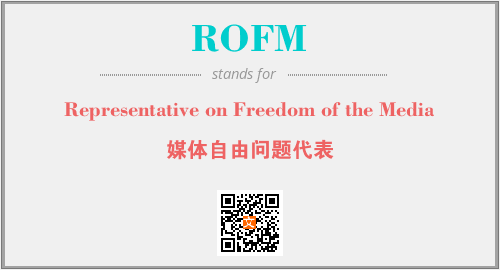 上述内容是“Representative on Freedom of the Media”作为“ROFM”的缩写,解释为“媒体自由问题代表”时的信息,以及英文缩略词ROFM所代表的英文单词,其对应的中文拼音、详细解释以及在英文中的流行度和相关分类、应用领域及应用示例等。