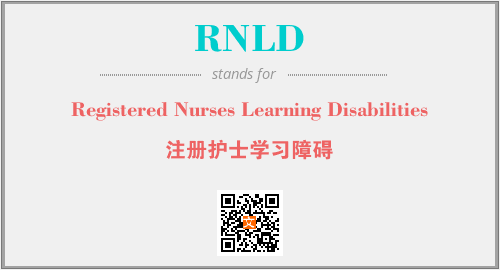 上述内容是“Registered Nurses Learning Disabilities”作为“RNLD”的缩写,解释为“注册护士学习障碍”时的信息,以及英文缩略词RNLD所代表的英文单词,其对应的中文拼音、详细解释以及在英文中的流行度和相关分类、应用领域及应用示例等。
