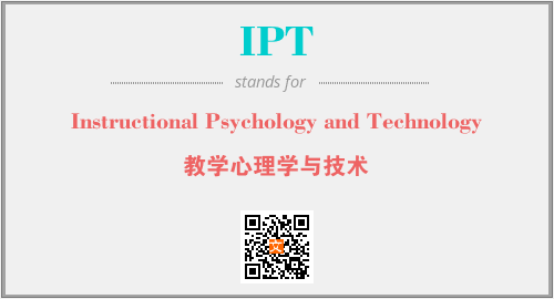 上述内容是“Instructional Psychology and Technology”作为“IPT”的缩写,解释为“教学心理学与技术”时的信息,以及英文缩略词IPT所代表的英文单词,其对应的中文拼音、详细解释以及在英文中的流行度和相关分类、应用领域及应用示例等。