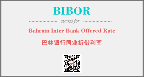 英文缩略词“BIBOR”经常作为“Bahrain Inter Bank Offered Rate”的英文缩写来使用,中文表示:“巴林银行同业拆借利率”。本文将详细介绍英文缩写词BIBOR所代表英文单词,其对应的中文拼音、详细解释以及在英语中的流行度。此外,还有关于缩略词BIBOR的分类、应用领域及相关应用示例等。