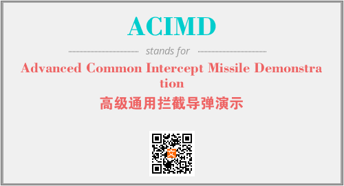 上述内容是“Advanced Common Intercept Missile Demonstration”作为“ACIMD”的缩写,解释为“高级通用拦截导弹演示”时的信息,以及英文缩略词ACIMD所代表的英文单词,其对应的中文拼音、详细解释以及在英文中的流行度和相关分类、应用领域及应用示例等。