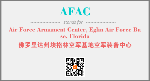 英文缩略词“AFAC”经常作为“Air Force Armament Center, Eglin Air Force Base, Florida”的英文缩写来使用,中文表示:“佛罗里达州埃格林空军基地空军装备中心”。本文将详细介绍英文缩写词AFAC所代表英文单词,其对应的中文拼音、详细解释以及在英语中的流行度。此外,还有关于缩略词AFAC的分类、应用领域及相关应用示例等。