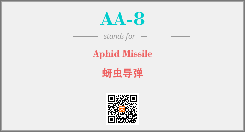 英文缩略词“AA-8”经常作为“Aphid Missile”的英文缩写来使用,中文表示:“蚜虫导弹”。本文将详细介绍英文缩写词AA-8所代表英文单词,其对应的中文拼音、详细解释以及在英语中的流行度。此外,还有关于缩略词AA-8的分类、应用领域及相关应用示例等。
