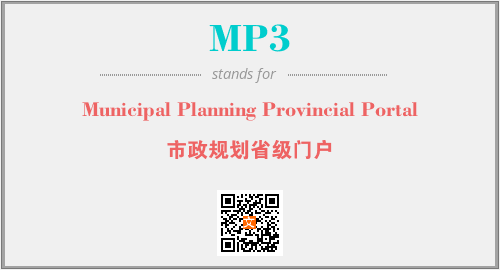 上述内容是“Municipal Planning Provincial Portal”作为“MP3”的缩写,解释为“市政规划省级门户”时的信息,以及英文缩略词MP3所代表的英文单词,其对应的中文拼音、详细解释以及在英文中的流行度和相关分类、应用领域及应用示例等。