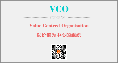 上述内容是“Value Centred Organisation”作为“VCO”的缩写,解释为“以价值为中心的组织”时的信息,以及英文缩略词VCO所代表的英文单词,其对应的中文拼音、详细解释以及在英文中的流行度和相关分类、应用领域及应用示例等。