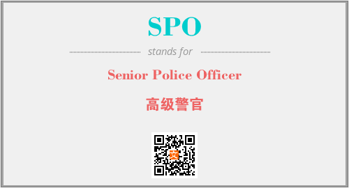 上述内容是“Senior Police Officer”作为“SPO”的缩写,解释为“高级警官”时的信息,以及英文缩略词SPO所代表的英文单词,其对应的中文拼音、详细解释以及在英文中的流行度和相关分类、应用领域及应用示例等。