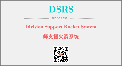 上述内容是“Division Support Rocket System”作为“DSRS”的缩写,解释为“师支援火箭系统”时的信息,以及英文缩略词DSRS所代表的英文单词,其对应的中文拼音、详细解释以及在英文中的流行度和相关分类、应用领域及应用示例等。