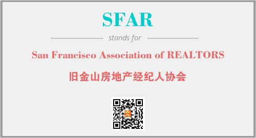 上述内容是“San Francisco Association of REALTORS”作为“SFAR”的缩写,解释为“旧金山房地产经纪人协会”时的信息,以及英文缩略词SFAR所代表的英文单词,其对应的中文拼音、详细解释以及在英文中的流行度和相关分类、应用领域及应用示例等。