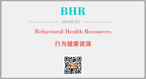 上述内容是“Behavioral Health Resources”作为“BHR”的缩写,解释为“行为健康资源”时的信息,以及英文缩略词BHR所代表的英文单词,其对应的中文拼音、详细解释以及在英文中的流行度和相关分类、应用领域及应用示例等。