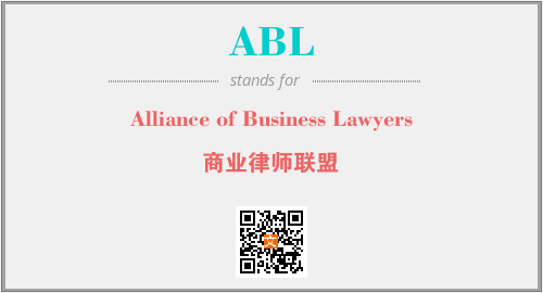 上述内容是“Alliance of Business Lawyers”作为“ABL”的缩写,解释为“商业律师联盟”时的信息,以及英文缩略词ABL所代表的英文单词,其对应的中文拼音、详细解释以及在英文中的流行度和相关分类、应用领域及应用示例等。