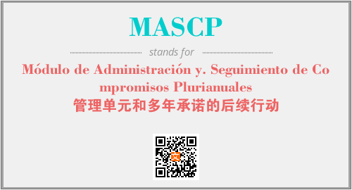 上述内容是“Módulo de Administración y. Seguimiento de Compromisos Plurianuales”作为“MASCP”的缩写,解释为“管理单元和多年承诺的后续行动”时的信息,以及英文缩略词MASCP所代表的英文单词,其对应的中文拼音、详细解释以及在英文中的流行度和相关分类、应用领域及应用示例等。