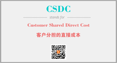 英文缩略词“CSDC”经常作为“Customer Shared Direct Cost”的英文缩写来使用,中文表示:“客户分担的直接成本”。本文将详细介绍英文缩写词CSDC所代表英文单词,其对应的中文拼音、详细解释以及在英语中的流行度。此外,还有关于缩略词CSDC的分类、应用领域及相关应用示例等。