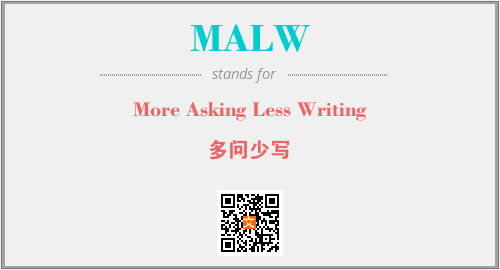 以上为More Asking Less Writing英文缩略词MALW的中文解释,以及该英文缩写在英语的流行度、分类和应用领域方面的信息。