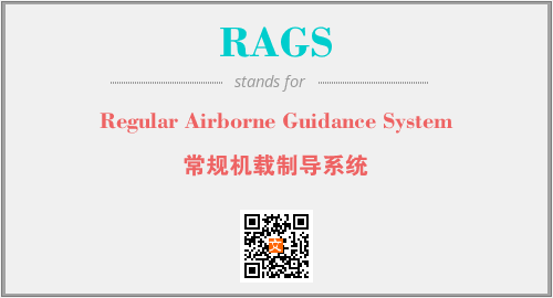 上述内容是“Regular Airborne Guidance System”作为“RAGS”的缩写,解释为“常规机载制导系统”时的信息,以及英文缩略词RAGS所代表的英文单词,其对应的中文拼音、详细解释以及在英文中的流行度和相关分类、应用领域及应用示例等。