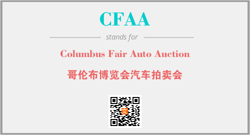 上述内容是“Columbus Fair Auto Auction”作为“CFAA”的缩写,解释为“哥伦布博览会汽车拍卖会”时的信息,以及英文缩略词CFAA所代表的英文单词,其对应的中文拼音、详细解释以及在英文中的流行度和相关分类、应用领域及应用示例等。