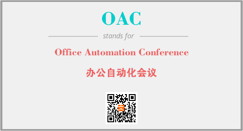 英文缩略词“OAC”经常作为“Office Automation Conference”的英文缩写来使用,中文表示:“办公自动化会议”。本文将详细介绍英文缩写词OAC所代表英文单词,其对应的中文拼音、详细解释以及在英语中的流行度。此外,还有关于缩略词OAC的分类、应用领域及相关应用示例等。