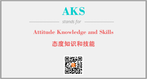 上述内容是“Attitude Knowledge and Skills”作为“AKS”的缩写,解释为“态度知识和技能”时的信息,以及英文缩略词AKS所代表的英文单词,其对应的中文拼音、详细解释以及在英文中的流行度和相关分类、应用领域及应用示例等。
